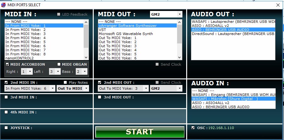 Mir würde das schon reichen, wenn die Mikro-Buchse am Laptop durchgeschleift werden könnte. So könnte man ohne zusätzliches Mischpult z.B. den Akkordeon-Original-Sound zur Arranger-Begleitung zumischen. Ohne vArranger funktioniert das ja ohne Probleme. Aber sobald vArranger gestartet wird, übernimmt vArranger das Kommando über den Micro-Eingang. Es kommt aber nichts durch. Habe alle möglichen Einstellungen ausprobiert. Irgendwas mache ich falsch ?
